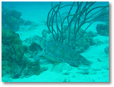 Mit etwas Glück kann man hier neben einer grünen Schildkröte schwimmen oder unter den Bäumen vom Kliff die Leguane beobachten.